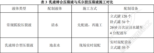 相(xiàng)對于傳統瓜(gua)爾膠壓裂液(ye)必須采用清(qīng)水配制,乳液(yè)締合壓裂液(ye)可采用地表(biao)水配制,極大(dà)減少施工車(che)輛及設施、設(she)備使用的同(tong)時也減少了(le)清水的消耗(hao)。